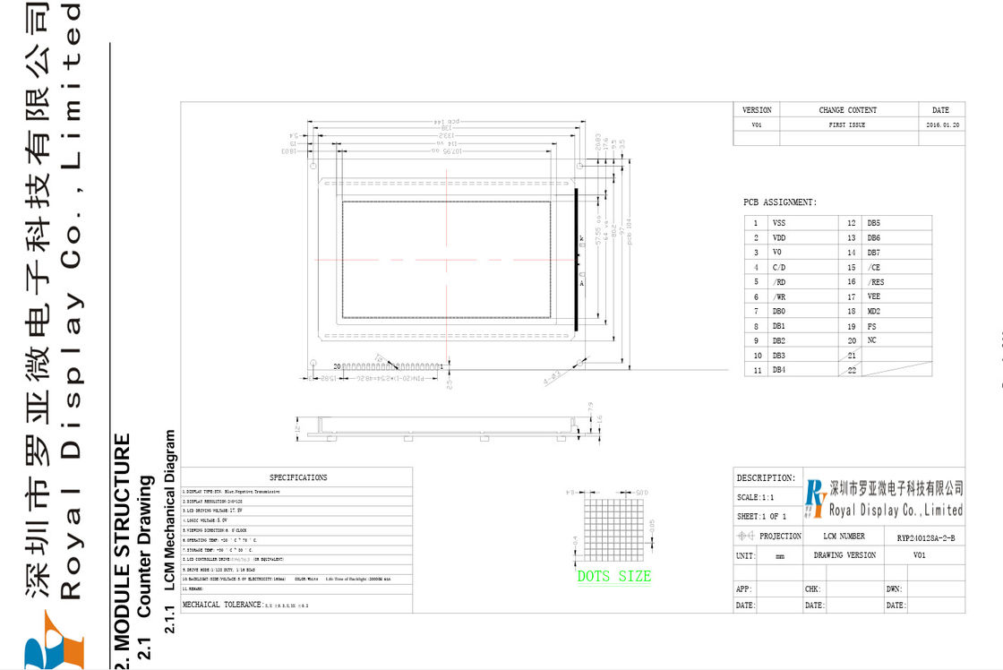 Description of 240*128 STN Blue LCD Module